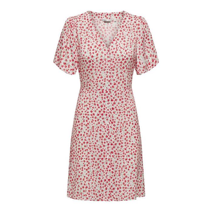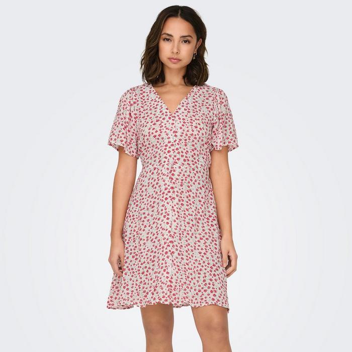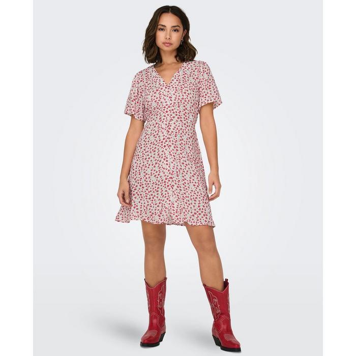 The women's ONLY Evida Short Dress is a fresh take on feminine fashion. Featuring a pretty mini floral pattern and fluttery cap-like sleeves, this ONLY mini dress is truly designed to brighten up your wardrobe. The lightweight, soft fabric is ideal for those fun summer days--from picnics in the park to dressed-up brunch dates. The self-tie waist lets you customize the fit to highlight your shape, topped off with a flattering v-neckline. If you're heading to a coffee date or a sunny backyard party, style your next summer outfit centered around the women's ONLY Evida Short Dress.